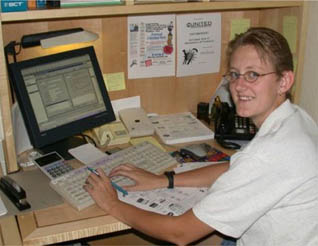 Kirah processes Federal Express packages using World Ship. The new software allows active tracking of a package anywhere in the world. |